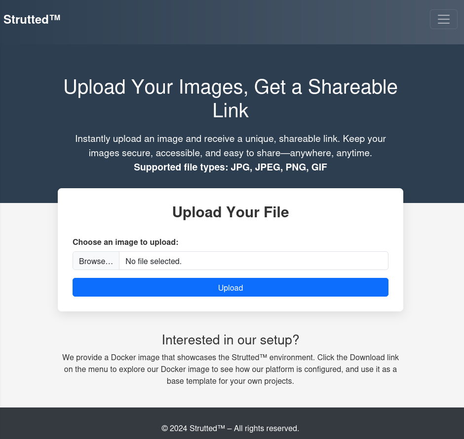 The Strutted page consists of a single image file upload with supported types: jpg,jpeg,png,and gif. For this upload form, the following interceptor is defined in the XML Struts definition file: